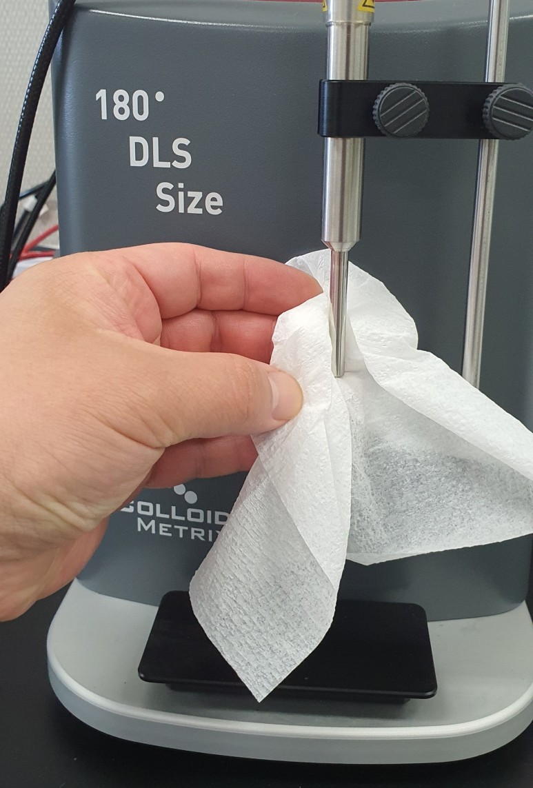 분석이 완료된 후 Laser probe 는 깨끗한 Tissue 등을 이용하여 Cleaning 하면 됩니다.