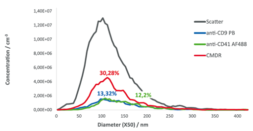 CD41/CMDR 이중 양성 EV의 비율을 빠르고 재현 가능하게 감지할 수 있었습니다.