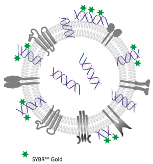 뉴클레아제 유무에 관계없이 배양된 SYBR™ Gold 라벨 EV의